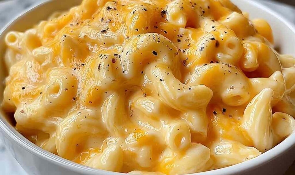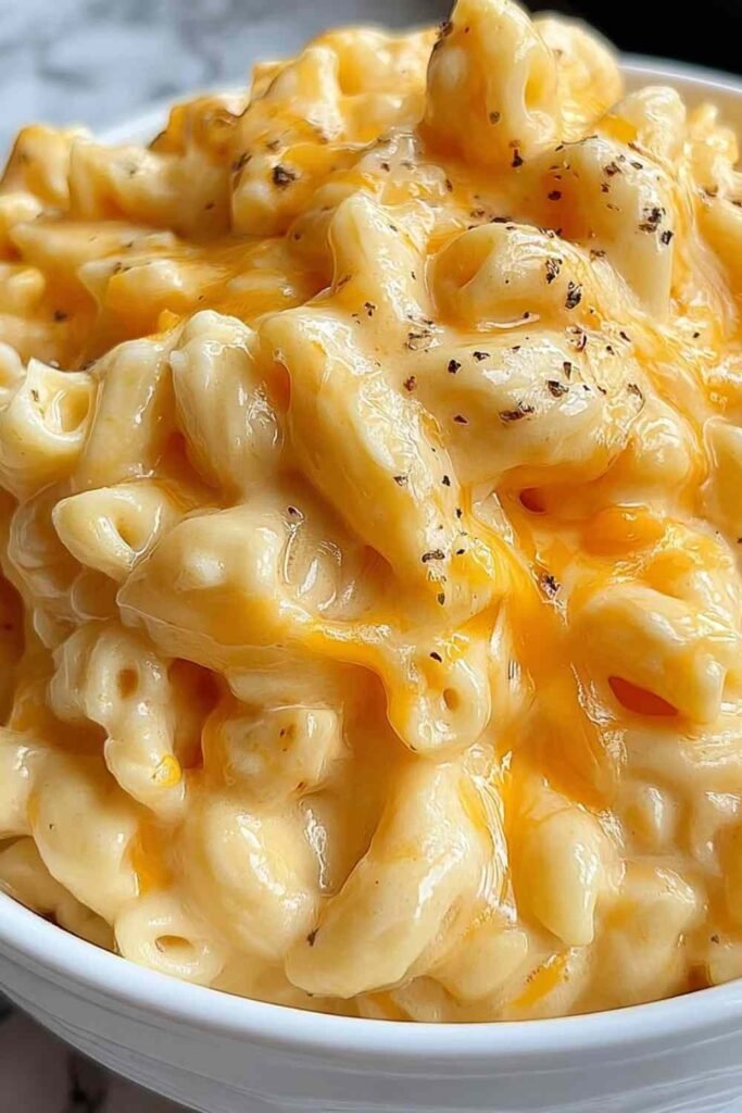 Step 5: Add the cooked pasta to the cheese sauce and fold everything together until every piece is well coated. Season with salt and pepper to taste.